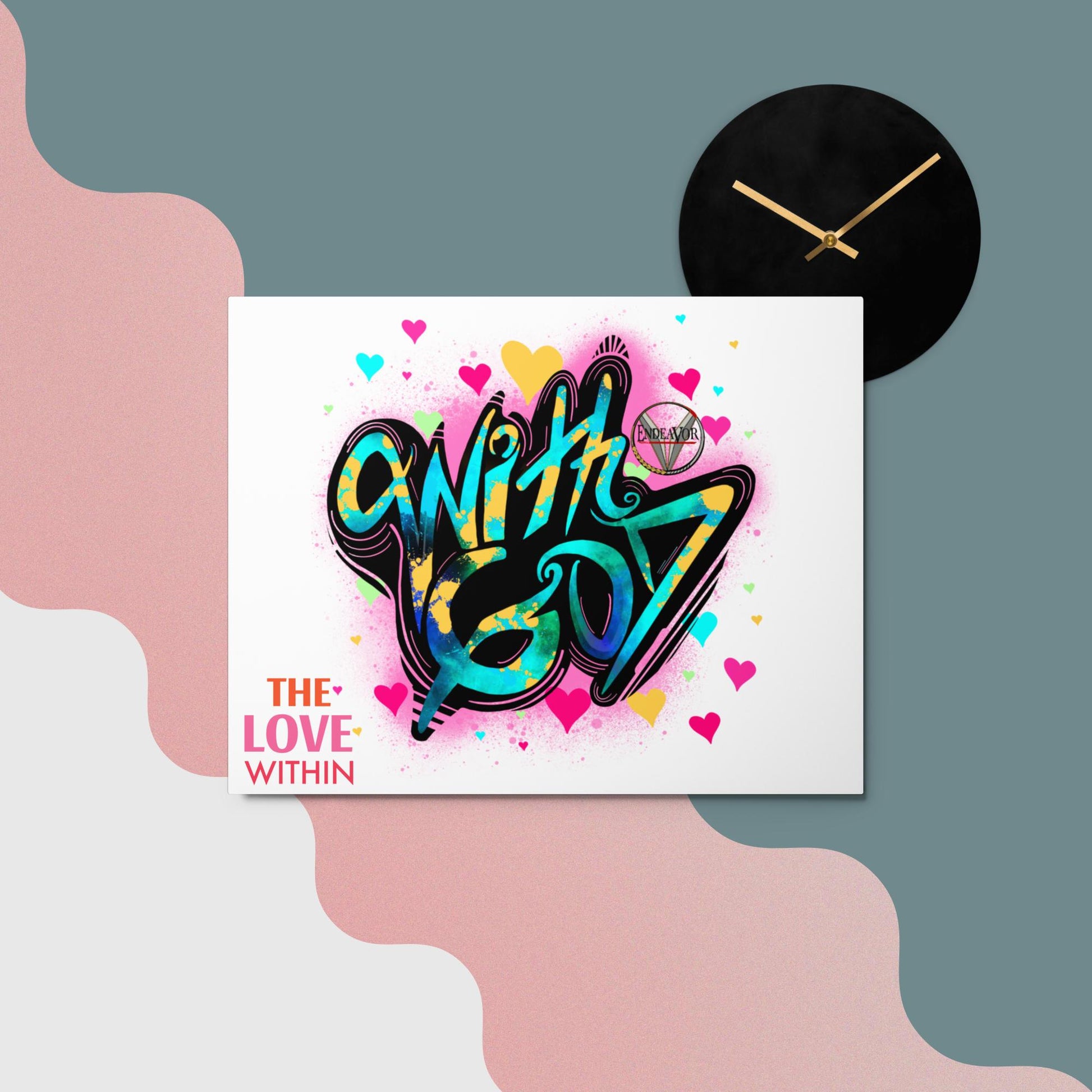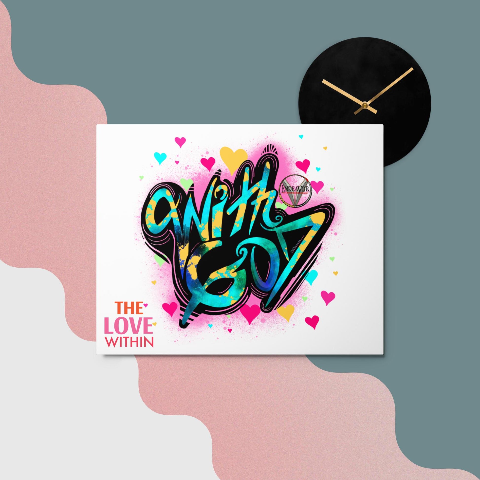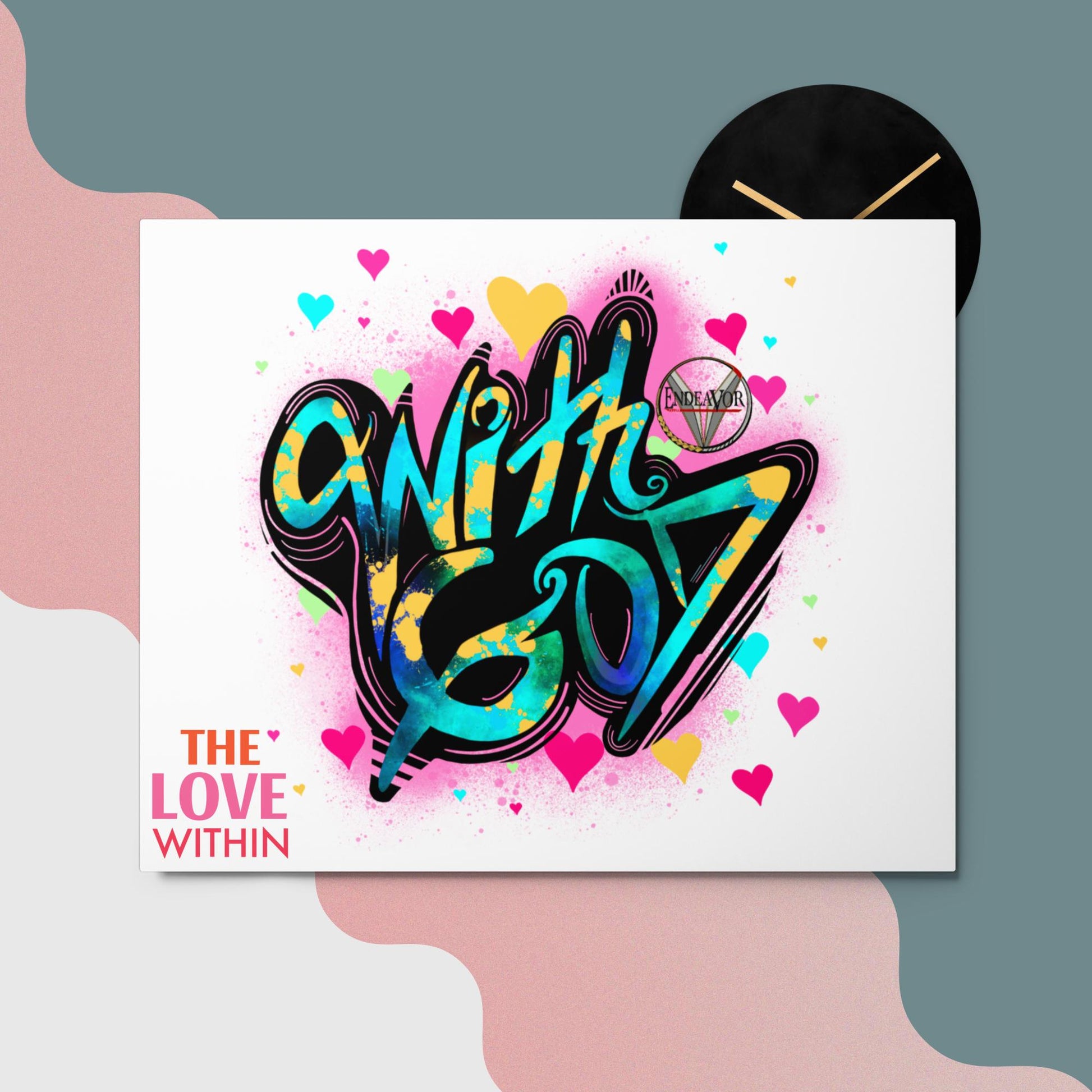 This With God, The Love Within metal print is a dimensional and high-quality piece of art that stands the test of time while remaining easy to clean and care for. The artwork looks luminescent against the wall and the metal base means it’ll last a long time.